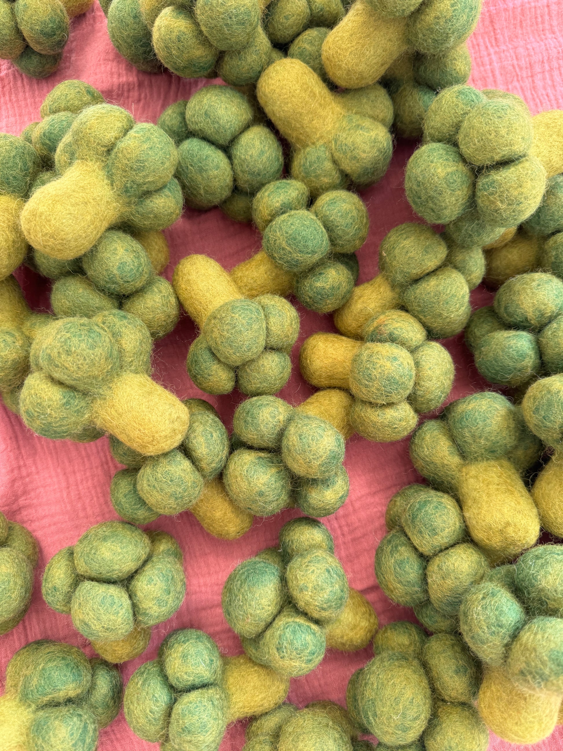 Jeder Brokkoli wird aus hochwertiger, nachhaltiger Schafwolle in sorgfältiger Handarbeit gefilzt. Dadurch ist jedes Stück ein Unikat – weich, langlebig und ideal für kleine Kinderhände.