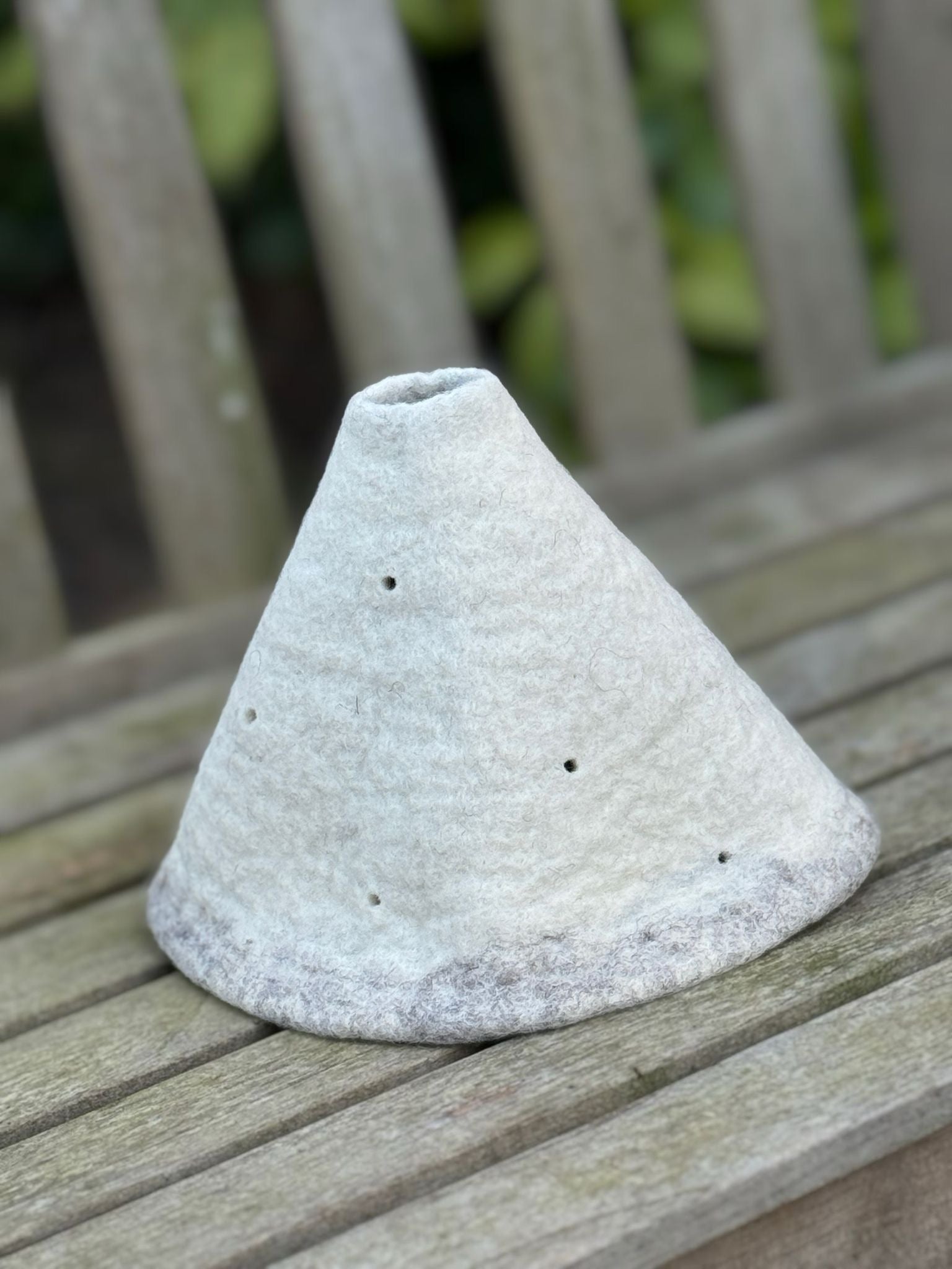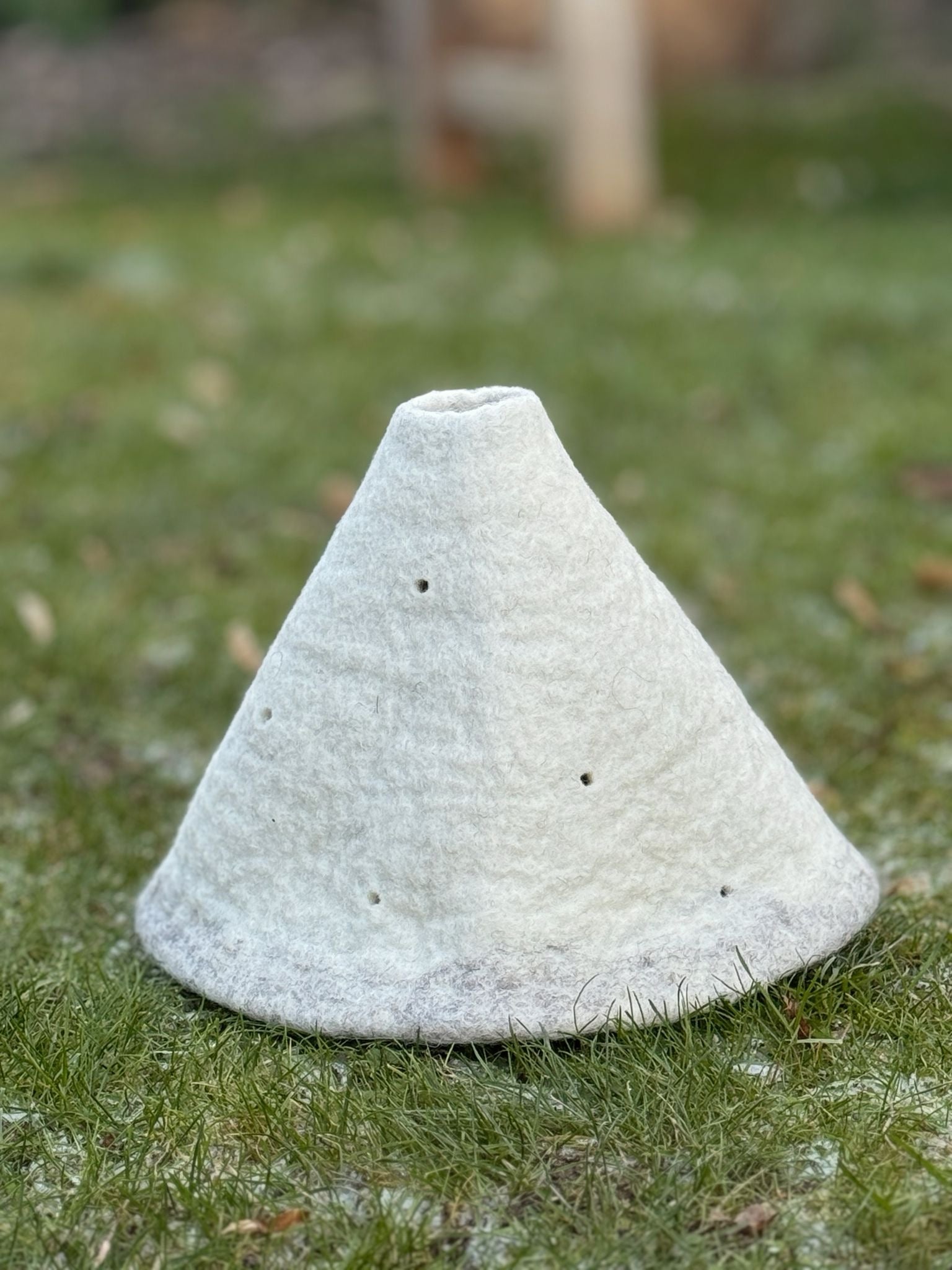 Der weiche, wollige Filz schafft eine warme Balance zur winterlichen Kühle und macht die Vase zu einem stimmungsvollen Element für den Jahreszeitentisch im Winter oder eine schlichte, natürliche Dekoration im Wohnraum.