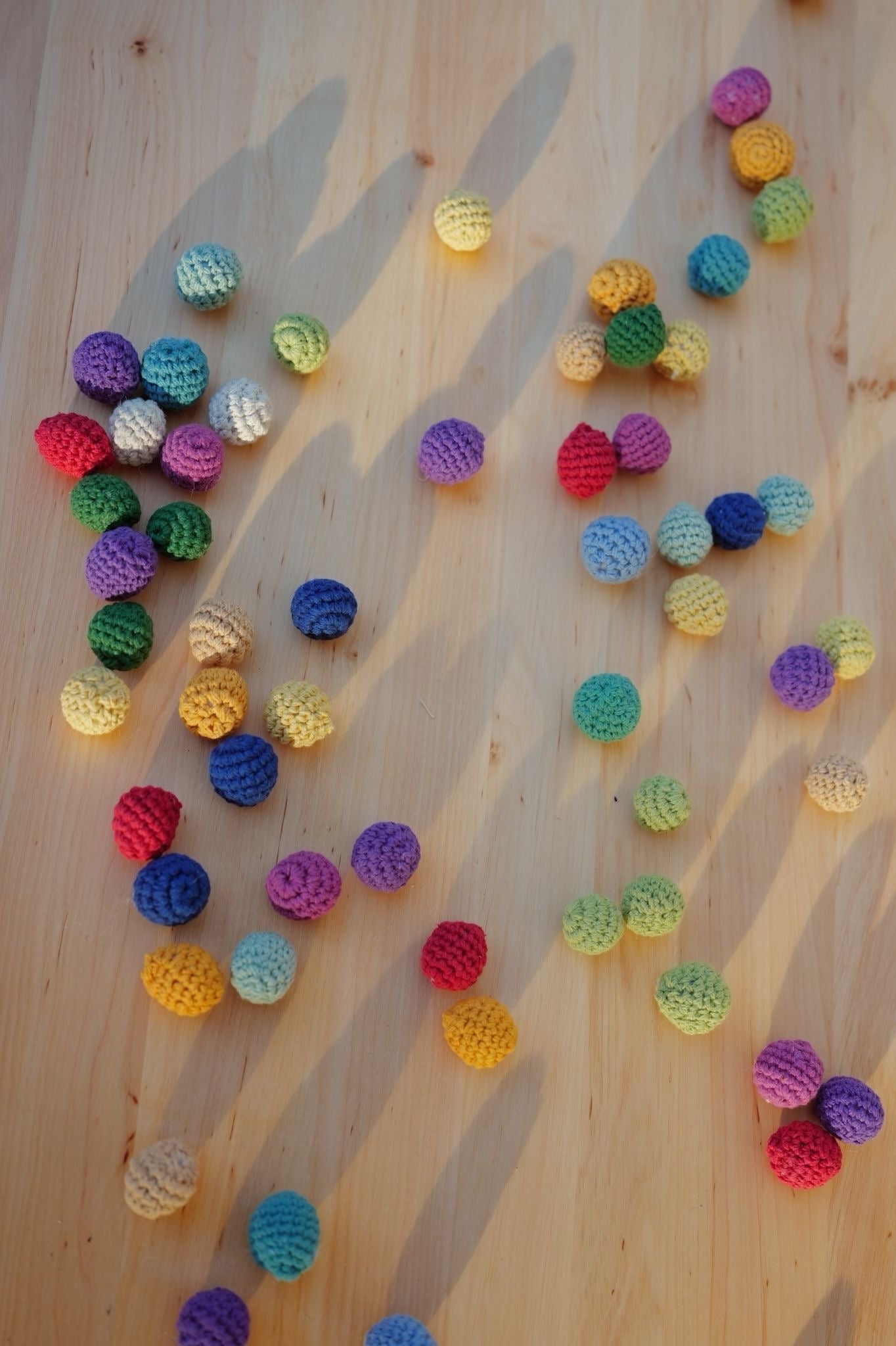 Bunte Häkelkugeln – 100 Stück, handgehäkelt & naturfreundlich