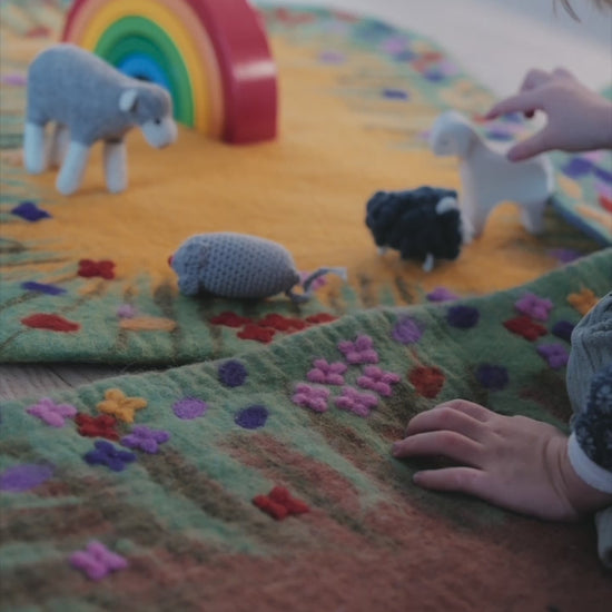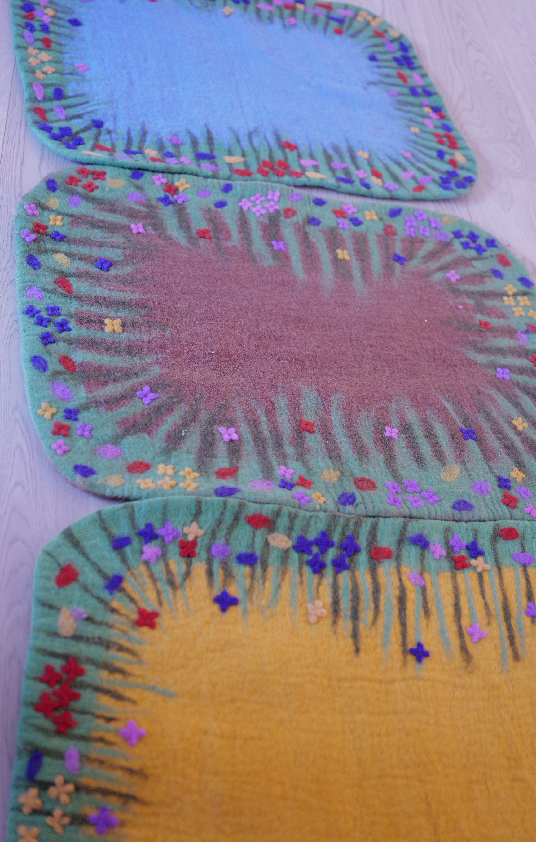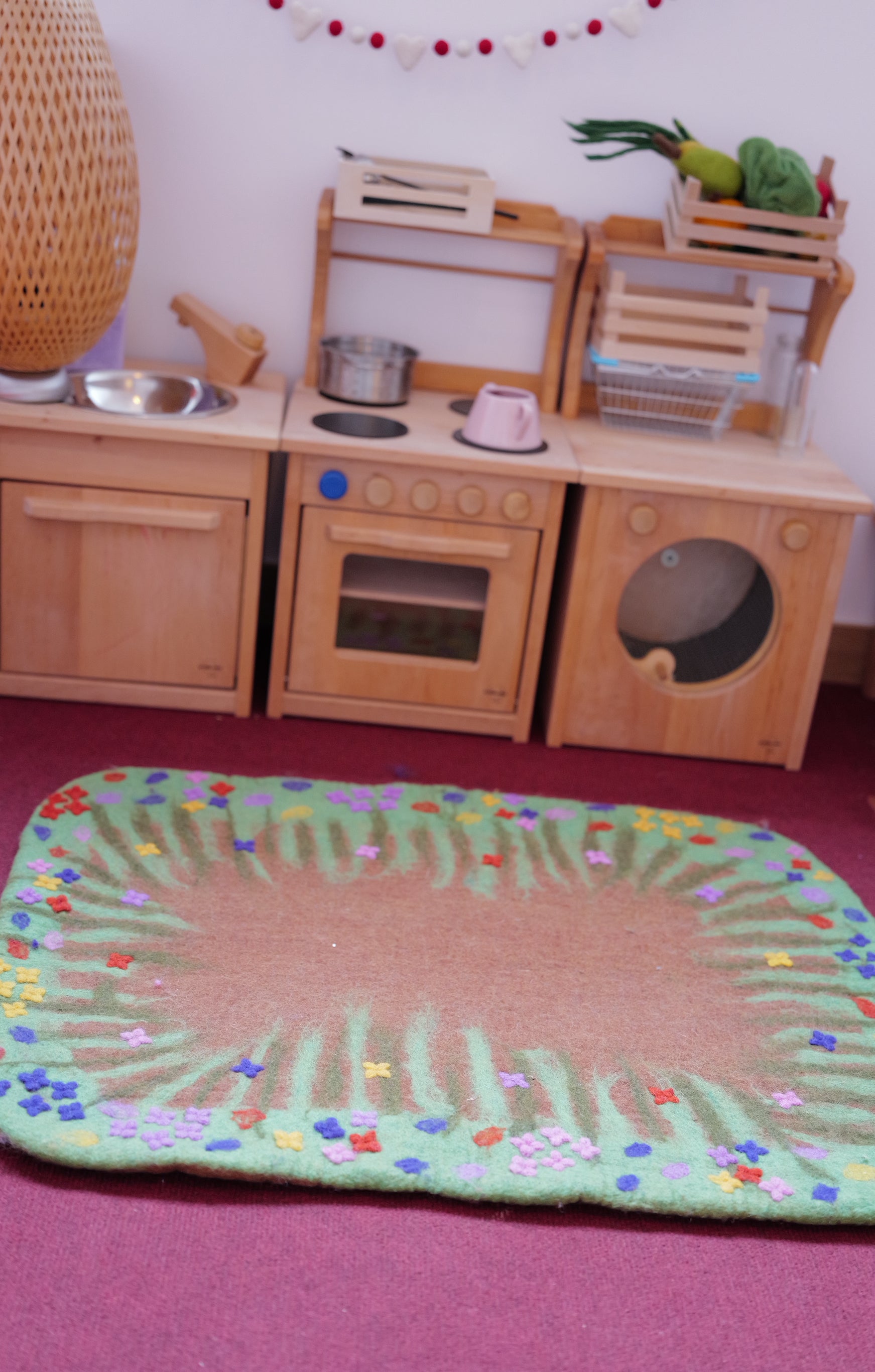Handgefilzter Spielteppich Blumenwiese in 3 Farben– ein zauberhafter Ort für Fantasie