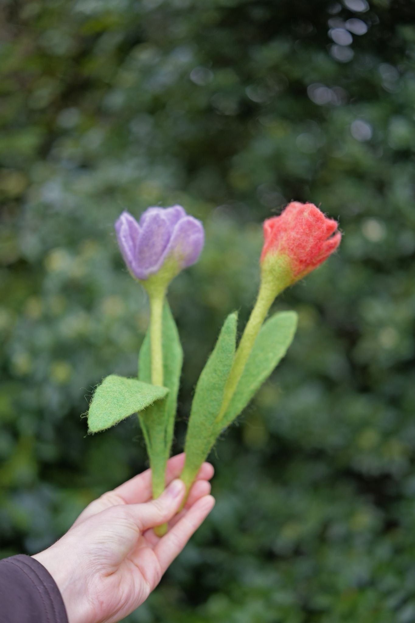 🌷 Zwei Tulpen für das freie Spiel – Gefilzte Frühlingsblumen aus Wolle